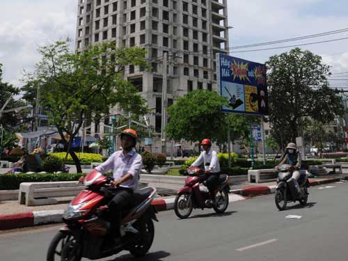 Một chung cư trên đường Bãi Sậy, quận 6, TP HCM bị khách hàng khiếu nại vì chậm giao nhà. Ảnh: HỒNG THÚY