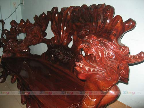 Sau khi có được những gốc cẩm lai khổng lồ được đánh giá là đã vài trăm năm tuổi, vị chủ nhân ở Hội An đã nhờ các nghệ nhân của làng nghề truyền thống Đồng Kỵ (Bắc Ninh) chạm trổ tinh xảo thành bàn, ghế, trường kỷ, bình phong.